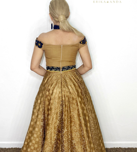 VESTIDO CORSET ENCAJE DORADO CON CAPA