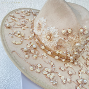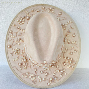 SOMBRERO DE GAMUZA BLANCO BORDADO