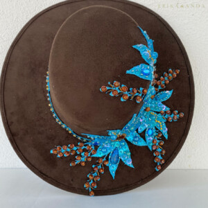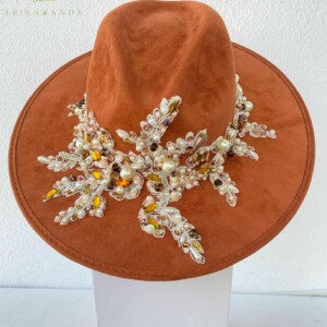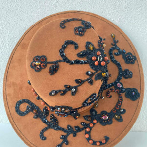 SOMBRERO DE GAMUZA CAFÉ CON FLORES