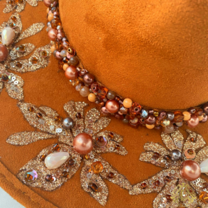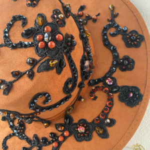 SOMBRERO DE GAMUZA CAFÉ Y BORDADO