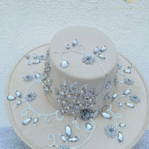 SOMBRERO DE GAMUSA BLANCO Y CRISTAL