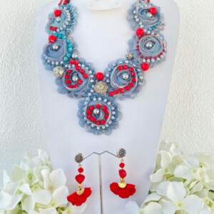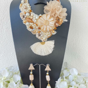COLLAR FLOR CHIFÓN CON PERLAS Y ARETES