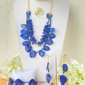 Incluye collar, aretes y pulsera. Nuestro producto es artesanal y 100% hecho por manos mexicanas ayudando a mujeres trabajadoras de nuestro país a preservar su forma de ingreso y cultura mexicana.