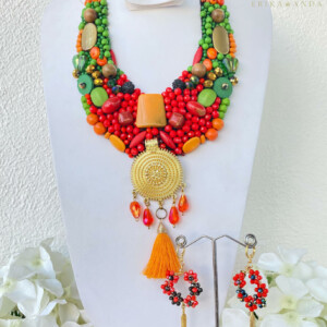 Este collar forma parte de la colección Janneth, es el accesorio perfecto para resaltar nuestros outfits este collar es único no hay otro igual, Te proveerá de un look elegante y mexicano.