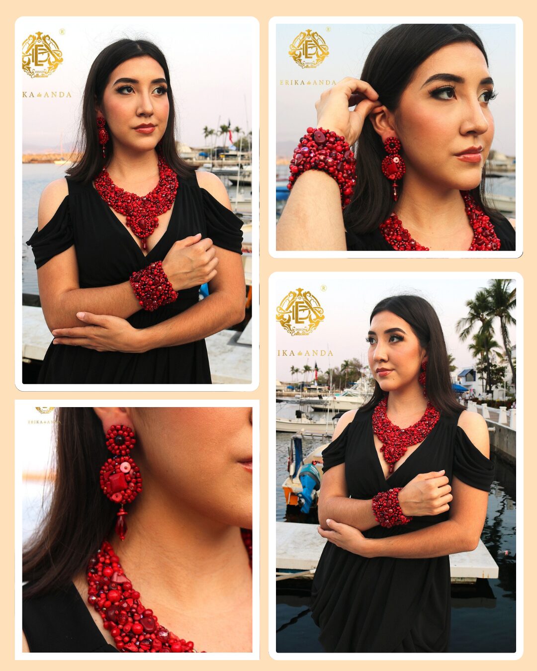 Incluye collar aretes y pulsera de regalo . Nuestro producto es artesanal y 100% hecho por manos mexicanas ayudando a mujeres trabajadoras de nuestro país a preservar su forma de ingreso y cultura mexicana.