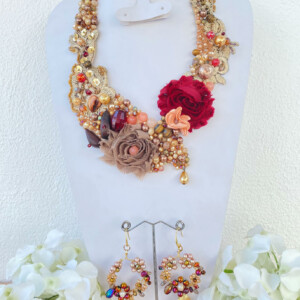 Incluye collar y aretes. Nuestro producto es artesanal y 100% hecho por manos mexicanas ayudando a mujeres trabajadoras de nuestro país a preservar su forma de ingreso y cultura mexicana.