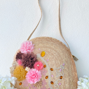BOLSA DE PETATE CON FLORES DE CHIFON