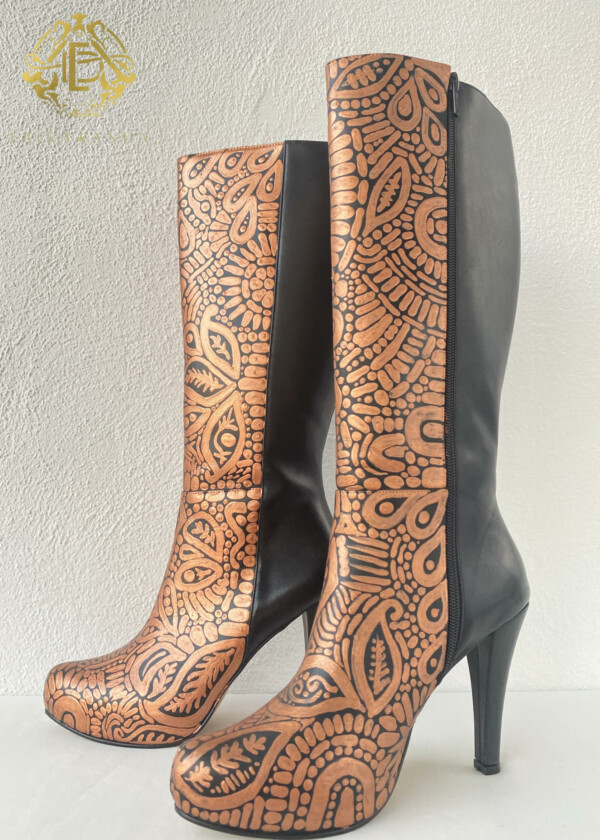 BOTA DE PIEL PINTADA A MANO DORADAS