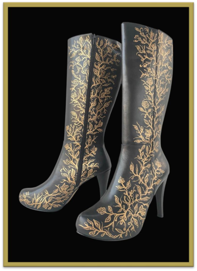 BOTA DE PIEL PINTADA A MANO DORADAS