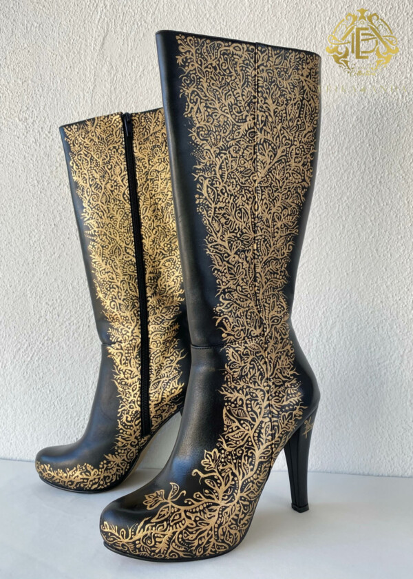 BOTA DE PIEL PINTADA A MANO DORADAS