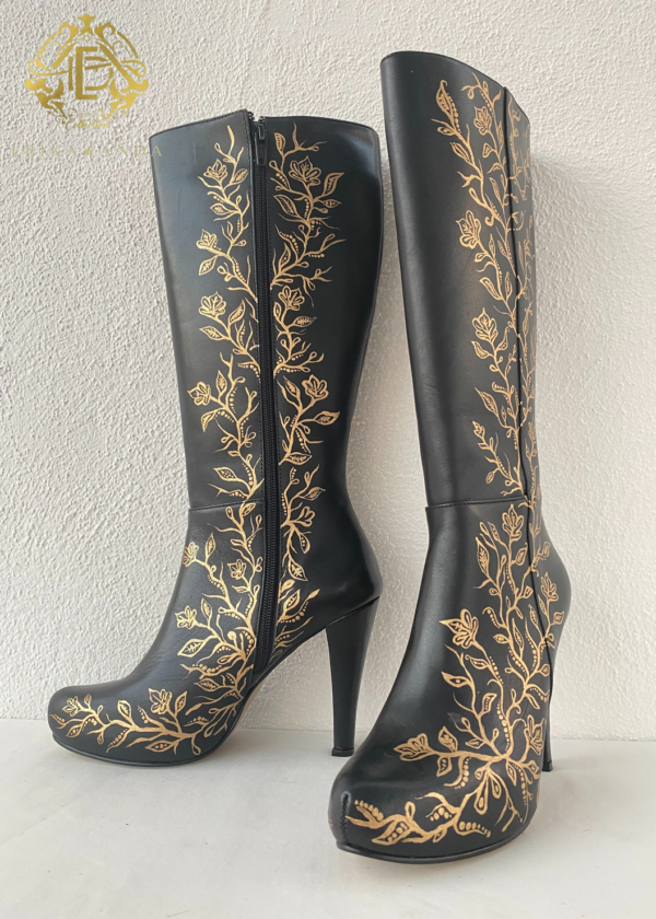 BOTA DE PIEL PINTADA A MANO DORADAS