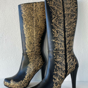 BOTA DE PIEL PINTADA A MANO DORADAS