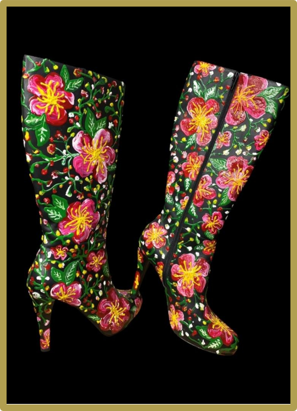Eleva tu estilo con estas botas que fusionan elegancia y tradición mexicana. Cada par es una pieza única, pintada a mano con dedicación y detalle, pensada para destacar cualquier outfit con carácter y sofisticación. Ideales para ocasiones especiales o para convertir un look cotidiano en algo extraordinario.