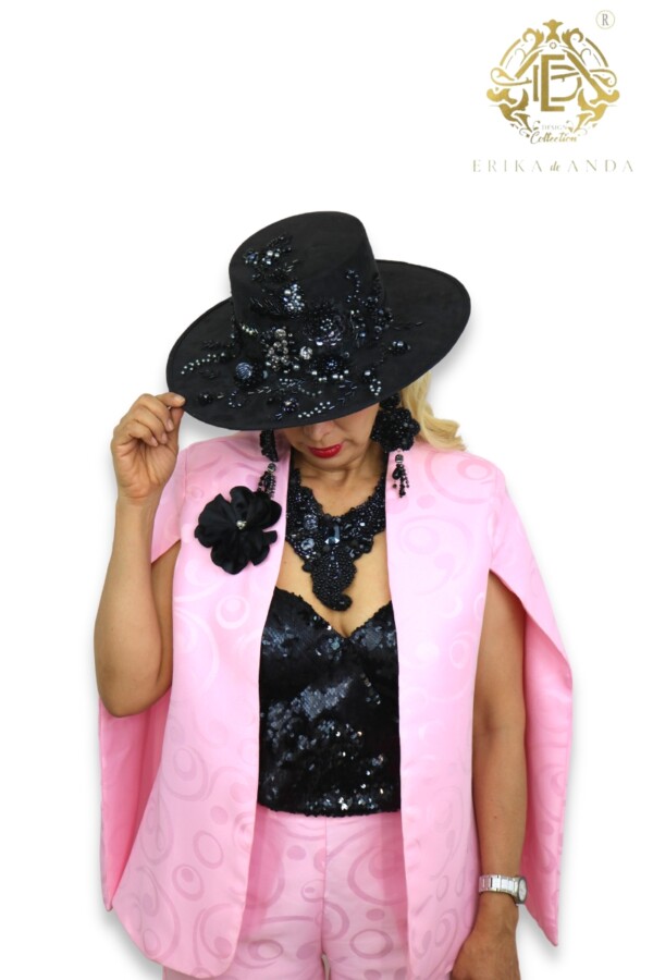 CAPA ROSA CON FLOR NEGRA BORDADA