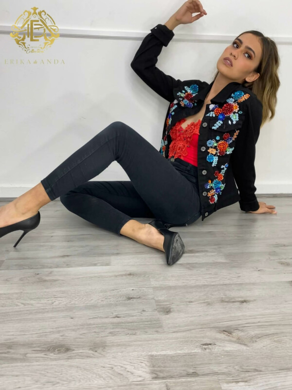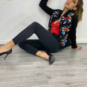 CHAMARRA NEGRA CON BORDADO FLORAL DE CHAQUIRON