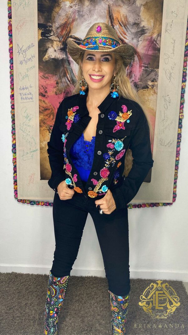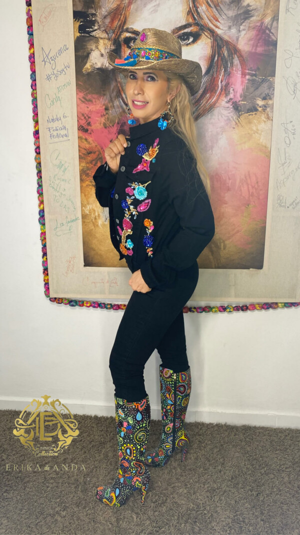Esta chamarra forma parte de Erika de Anda shop, es la chamarra perfecta para resaltar, es única no hay otra igual, Te proveerá de un look elegante y mexicano.