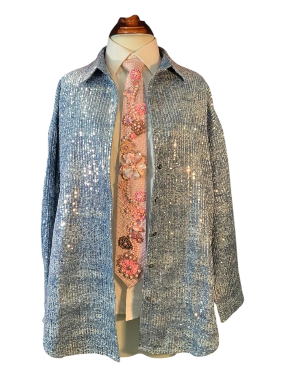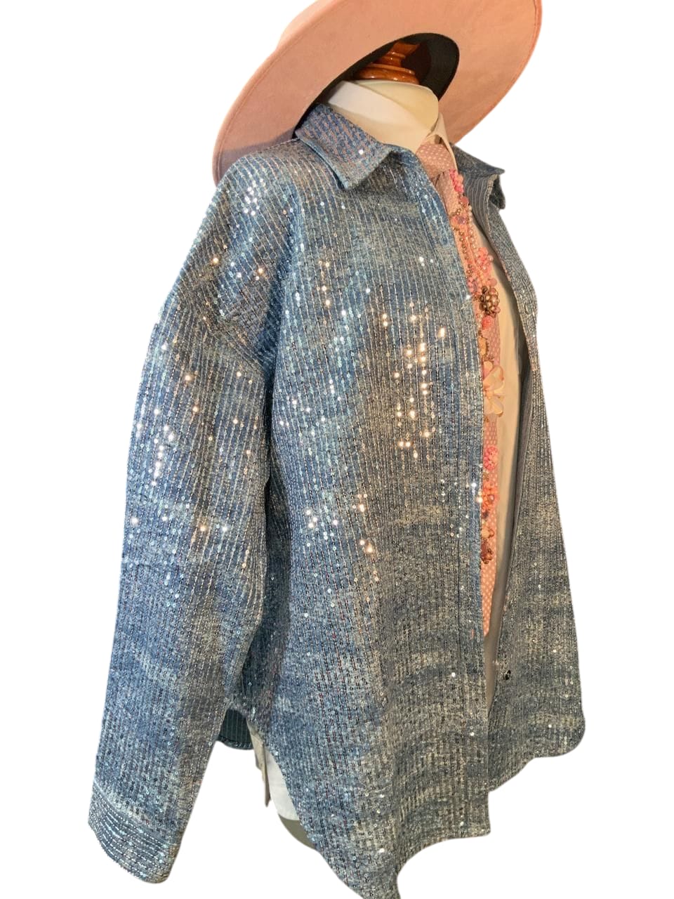 CHAQUETA BRILLANTE DE LENTEJUELA AZUL