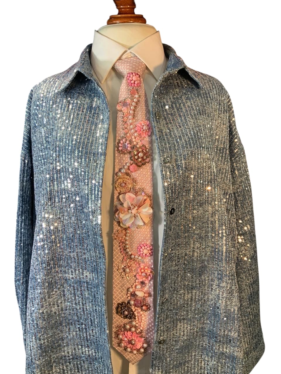 Brilla con elegancia y autenticidad con esta hermosa chaqueta de lentejuela. Su diseño está cuidadosamente trabajado, creando una pieza que refleja la fuerza y el arte. Perfecto para ocasiones especiales o para destacar con un toque sofisticado.