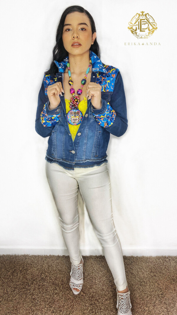 Esta chamarra forma parte de Erika de Anda shop, es la chamarra perfecta para resaltar, es única no hay otra igual, Te proveerá de un look elegante y mexicano.