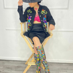 Esta chamarra forma parte de Erika de Anda shop, es la chamarra perfecta para resaltar, es única no hay otra igual, Te proveerá de un look elegante y mexicano.