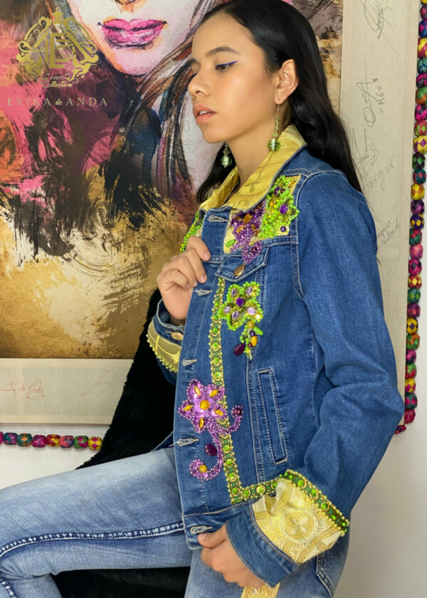Esta chamarra forma parte de Erika de Anda shop, es la chamarra perfecta para resaltar, es única no hay otra igual, Te proveerá de un look elegante y mexicano.