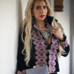 CHAMARRA NEGRA DE TERCIOPELO Y TONOS DORADOS