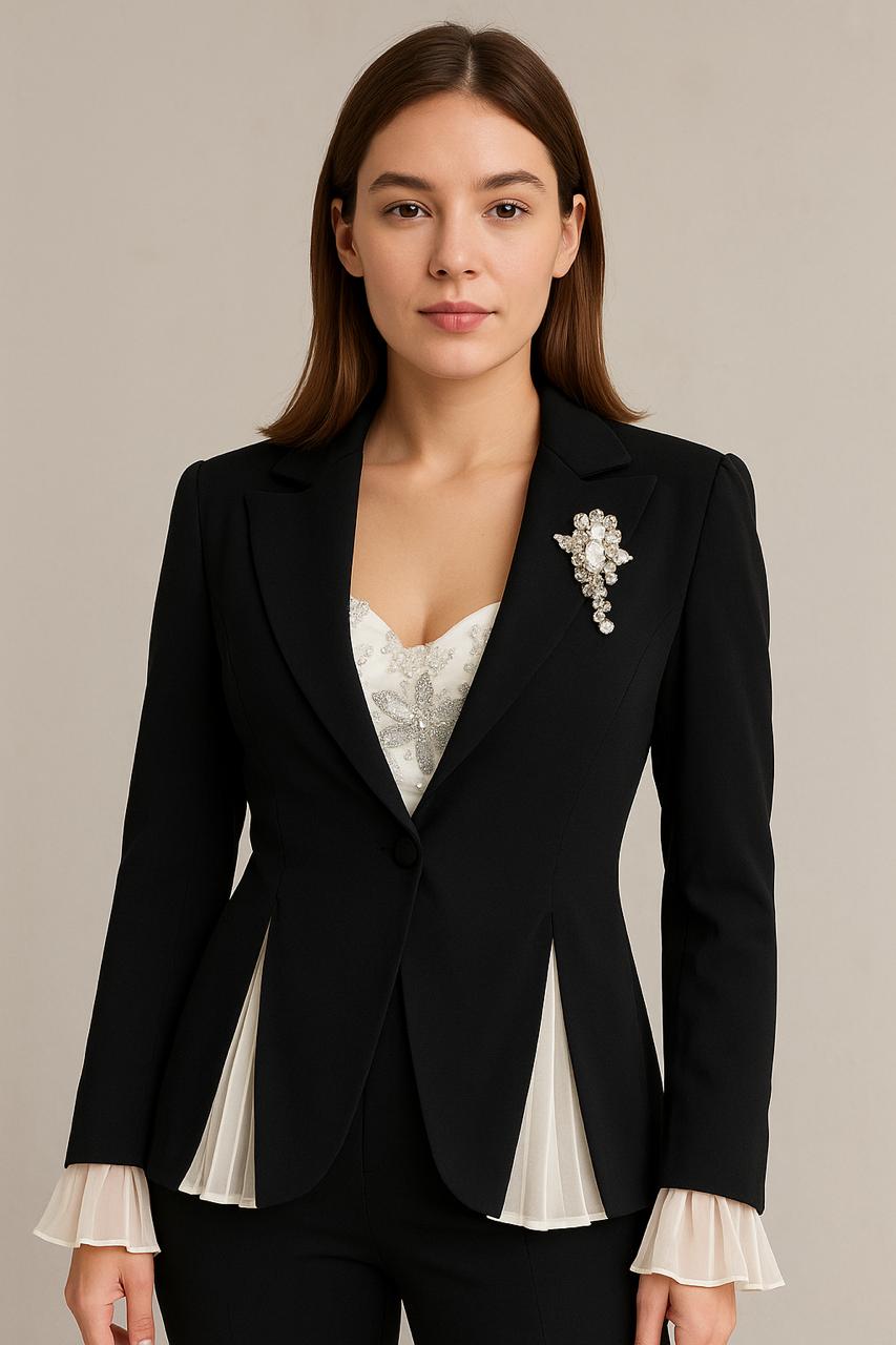CHAQUETA NEGRA CON DETALLES EN BLANCO