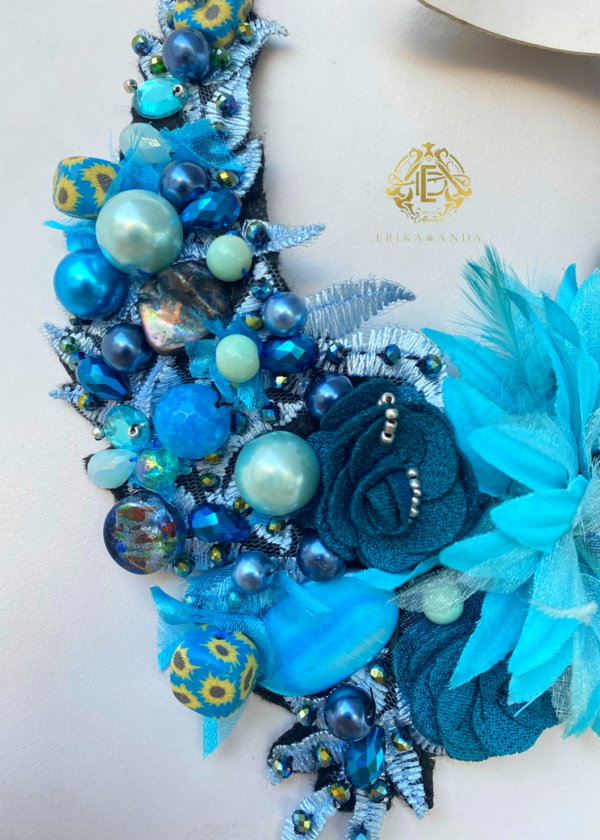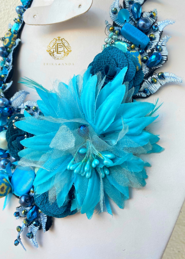 COLLAR AZUL FLOR DE TELA Y BORDADO