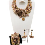 Detalles : Materiales: chaquirón, cristal, perlas sintéticas, dijes de metal, piedras naturales, motas de hilo. Incluye collar y aretes.