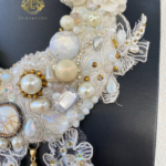 Materiales: chaquirón, perla sintética, flor de caucho, cristal, piedra de acrílico, piedra natural.