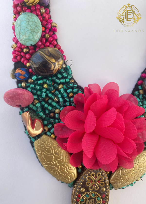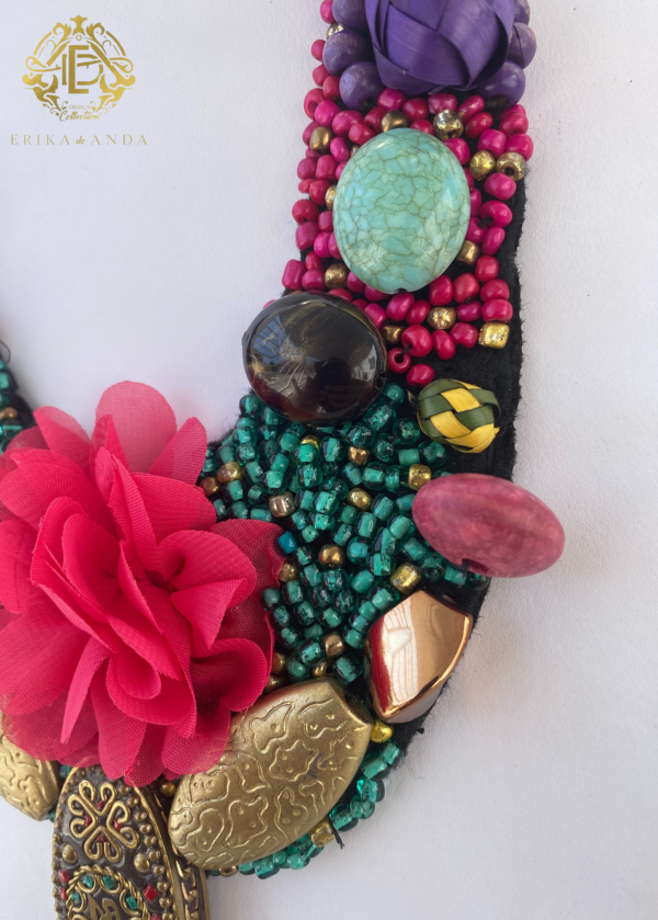 Este collar forma parte de la colección Janneth, es el accesorio perfecto para resaltar nuestros outfits este collar es único no hay otro igual, Te proveerá de un look elegante y mexicano.