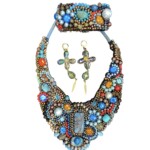 Detalles : Materiales: chaquirón, cristal, perlas sintéticas, motas de hilo, metal, piedra de natural, piedra acrílico. Incluye collar y aretes.