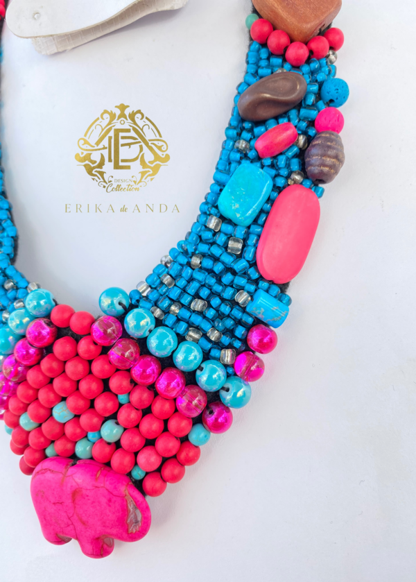 Este collar forma parte de la colección Janneth, es el accesorio perfecto para resaltar nuestros outfits este collar es único no hay otro igual, Te proveerá de un look elegante y mexicano.