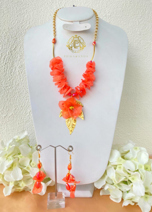 Incluye collar y aretes. Nuestro producto es artesanal y 100% hecho por manos mexicanas ayudando a mujeres trabajadoras de nuestro país a preservar su forma de ingreso y cultura mexicana.