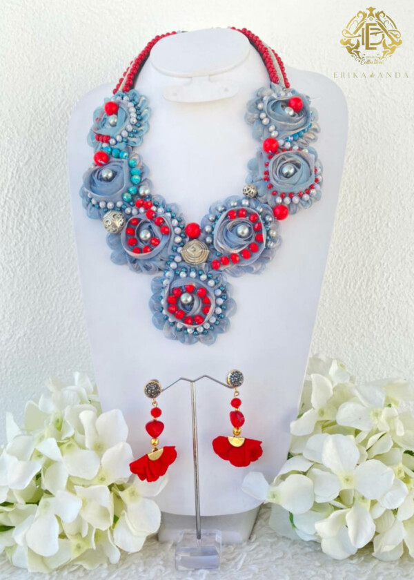 Incluye collar y aretes. Nuestro producto es artesanal y 100% hecho por manos mexicanas ayudando a mujeres trabajadoras de nuestro país a preservar su forma de ingreso y cultura mexicana.