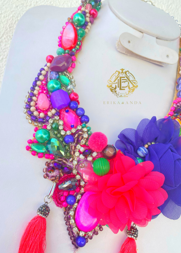 Este collar forma parte de la colección Zoé, es el accesorio perfecto para resaltar nuestros outfits, este collar es único no hay otro igual. Te proveerá de un look elegante y mexicano.
