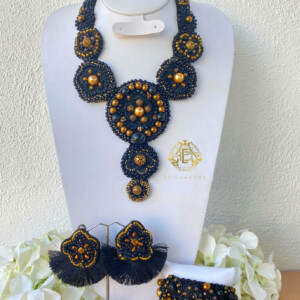 Incluye collar, aretes y pulsera. Nuestro producto es artesanal y 100% hecho por manos mexicanas ayudando a mujeres trabajadoras de nuestro país a preservar su forma de ingreso y cultura mexicana.