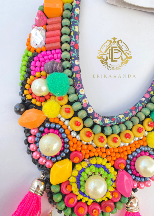 Este collar forma parte de la colección Janneth, es el accesorio perfecto para resaltar nuestros outfits este collar es único no hay otro igual, Te proveerá de un look elegante y mexicano.