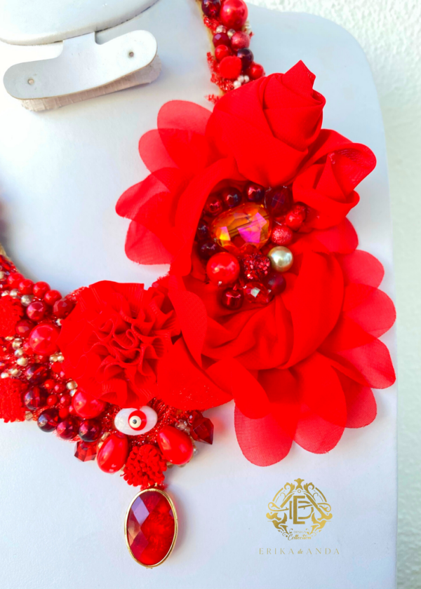 COLLAR ROJO FLOR DE CHIFON