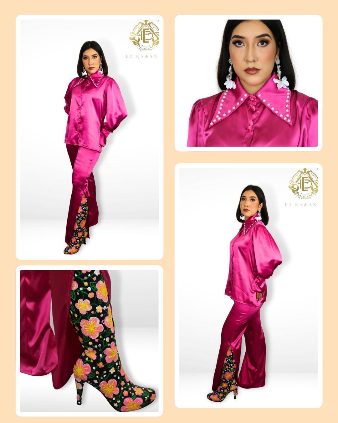 CONJUNTO PANTALON Y CAMISA MANGA LARGA COLOR ROSA MEXICANO