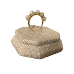 Juego de aretes y anillo dorado con Perla de acero inoxidable