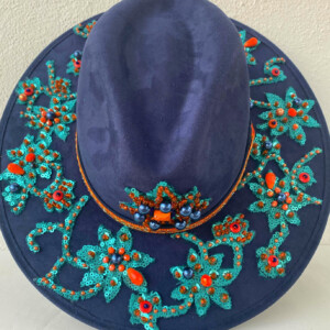 SOMBRERO DE GAMUSA AZUL CON BORDADO