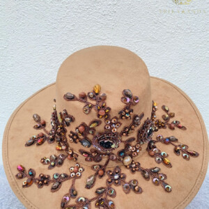 SOMBRERO DE GAMUZA CAFÉ BORDADO