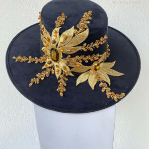 SOMBRERO GAMUZA NEGRO CON DORADO