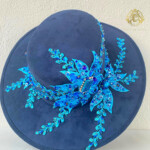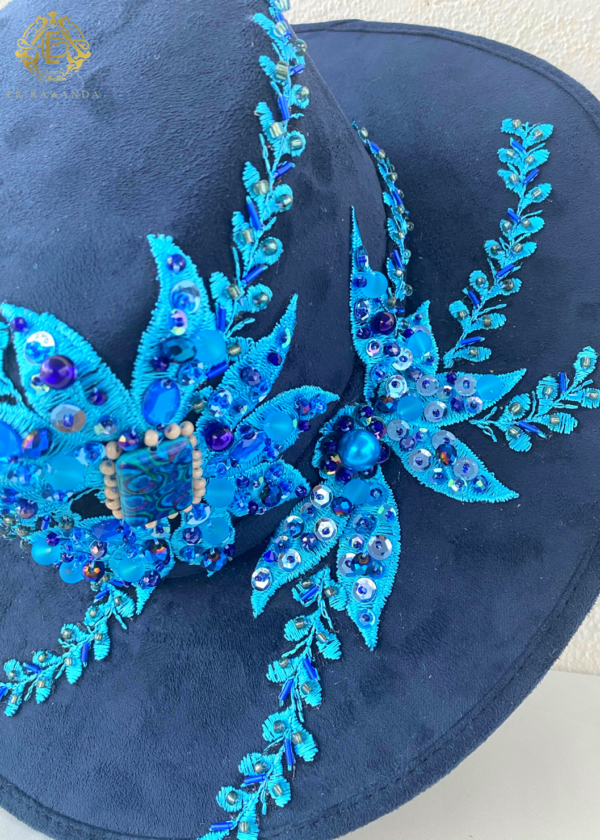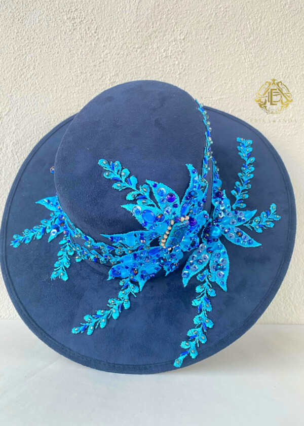 SOMBRERO DE GAMUSA AZUL CON BORDADO