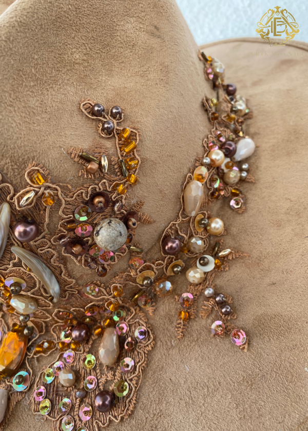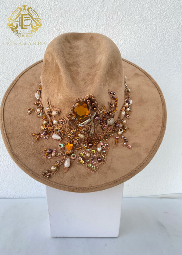 SOMBRERO DE GAMUZA CAFÉ BORDADO