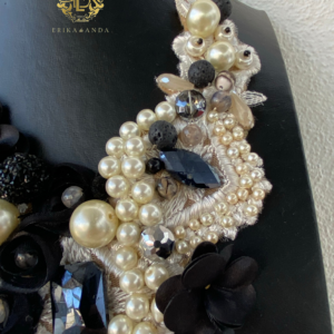 COLLAR NEGRO CON PERLAS Y CRISTALES