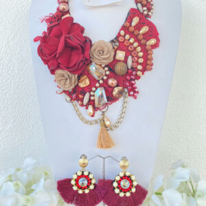 Incluye collar aretes . Nuestro producto es artesanal y 100% hecho por manos mexicanas ayudando a mujeres trabajadoras de nuestro país a preservar su forma de ingreso y cultura mexicana.