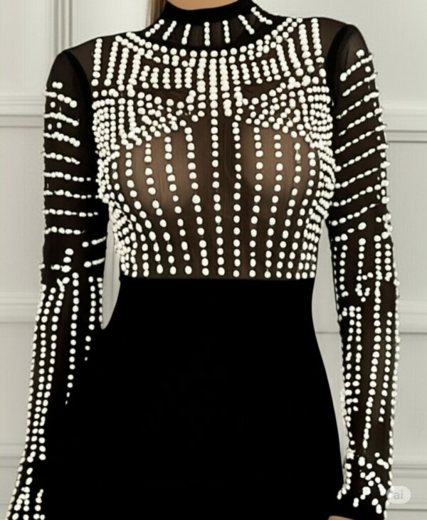 Brilla con elegancia y autenticidad con este hermoso vestido negro con transparencia en la parte superior. Su diseño cuidadosamente trabajado, perfecto para ocasiones especiales o para destacar con un toque sofisticado.