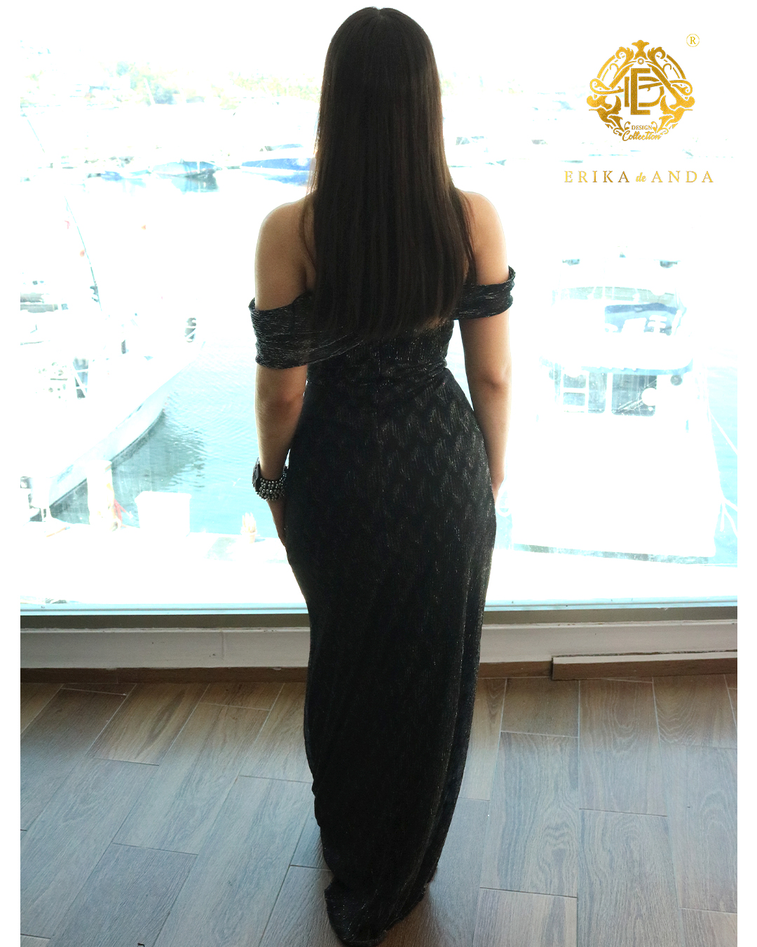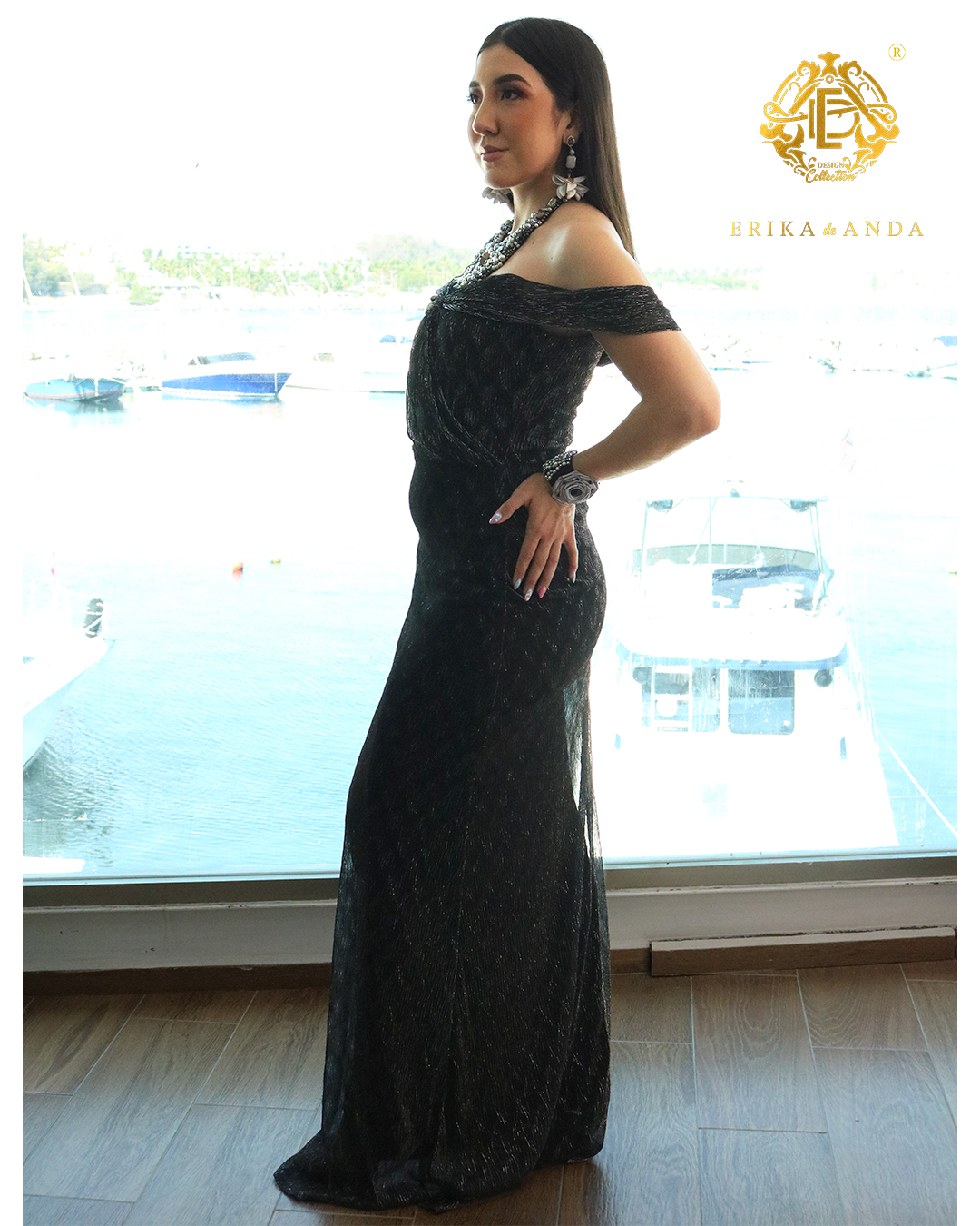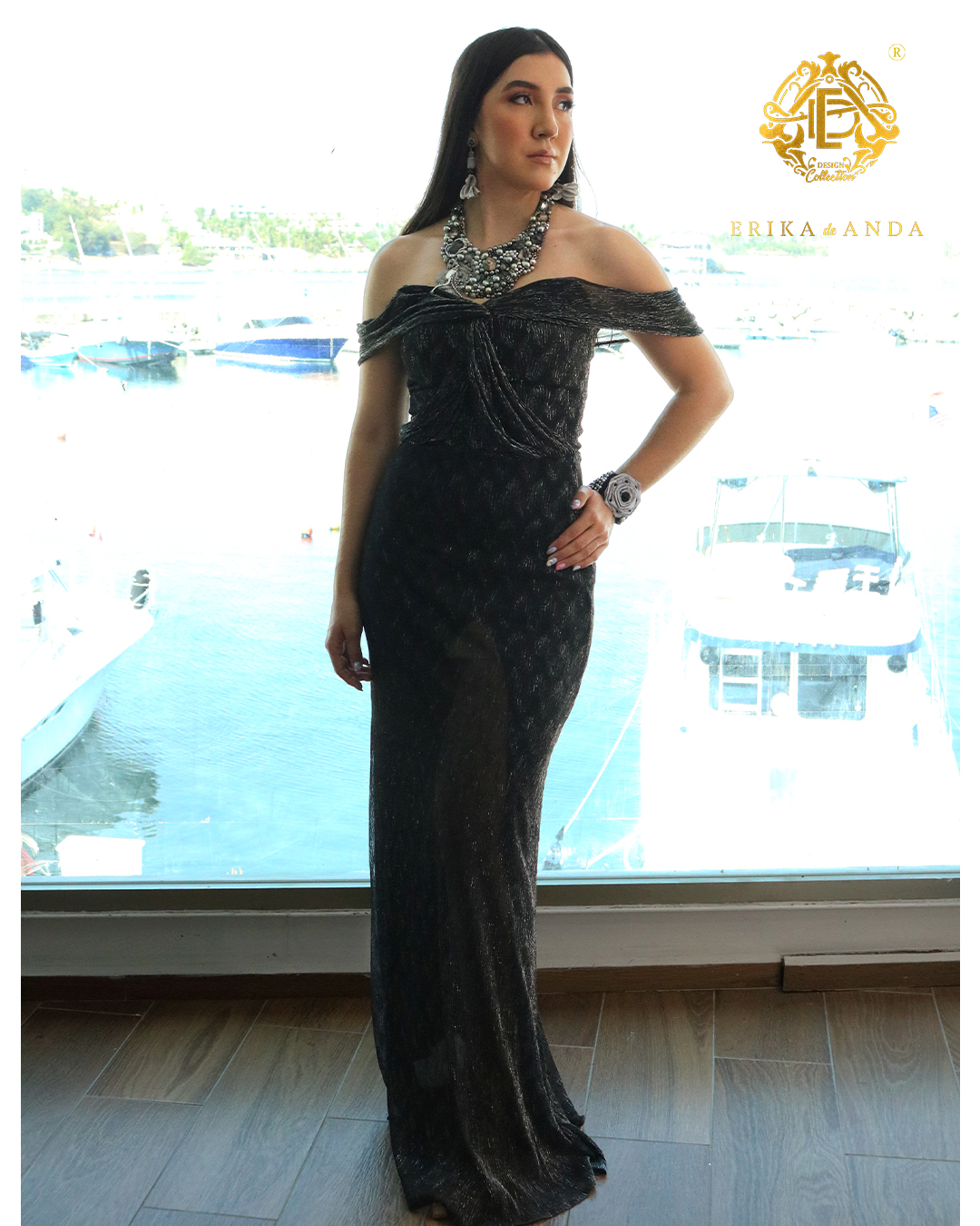 VESTIDO LARGO CON DESTELLOS PLATEADOS